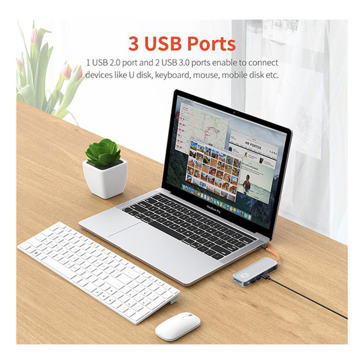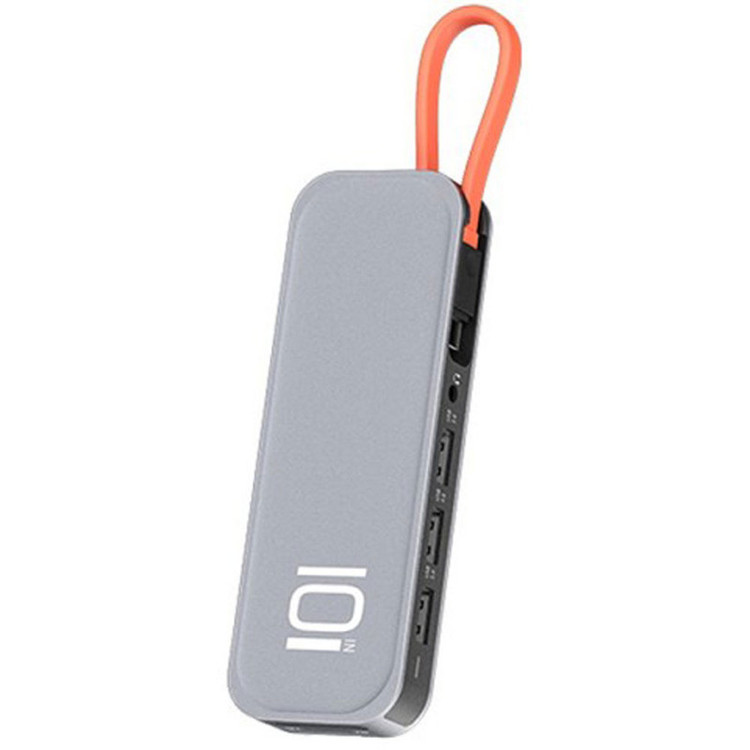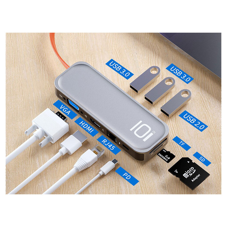 دارای 10 پورت، 2 پورت USB3.0، یک پورت USB2.0، یک پورت Type-C، یک پورت HDMI، یک پورت VGA ، یک پورت LAN، یک شیار SD، یک شیار TF و پورت AUX، انتقال داده سریع 5Gbps، فست شارژ PD 100W، پشتیبانی از تصاویر 4Kx2K، مناسب دستگاههای دارای پورت Type-C 3.1