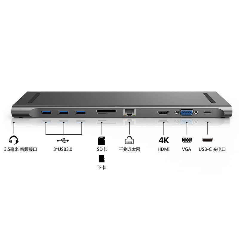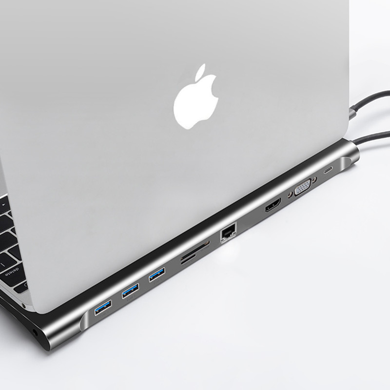 VGA HDMI Ethernet USB-C برای شارژ سریع با توان 60w micro SD و SD سه پورت USB-A جک 3.5mm صدا aux