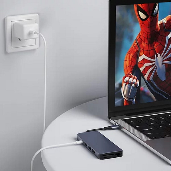 این هاب از جنس آلومینیوم بسیار با کیفیت طراحی شده است و دارای 12 پورت مختلف می باشد که با استفاده از یک پورت USB Type-C به کامپیوتر یا لپ تاپ شما متصل می شود.