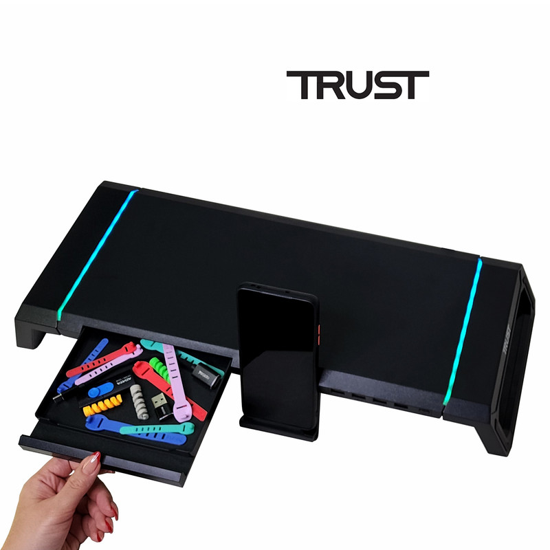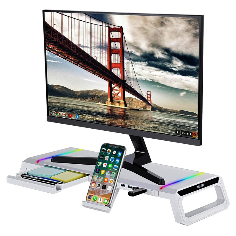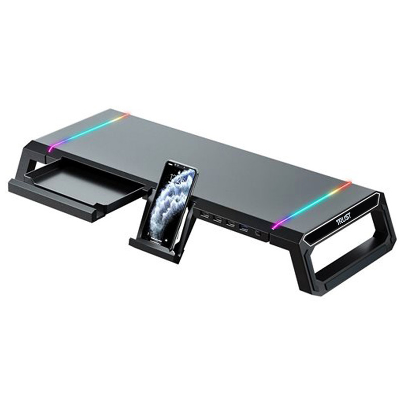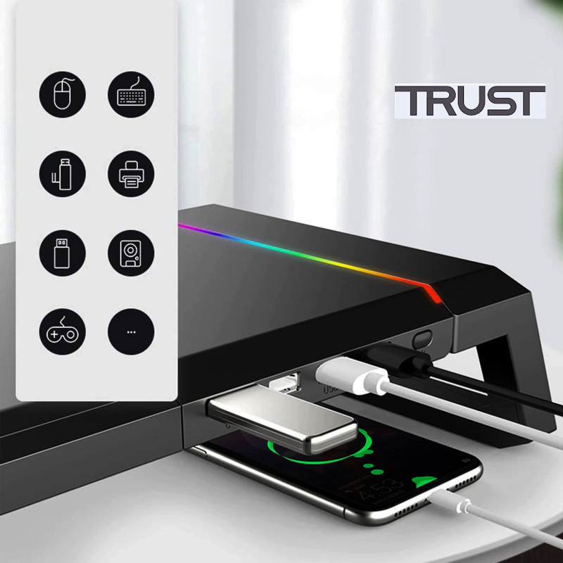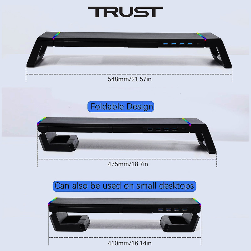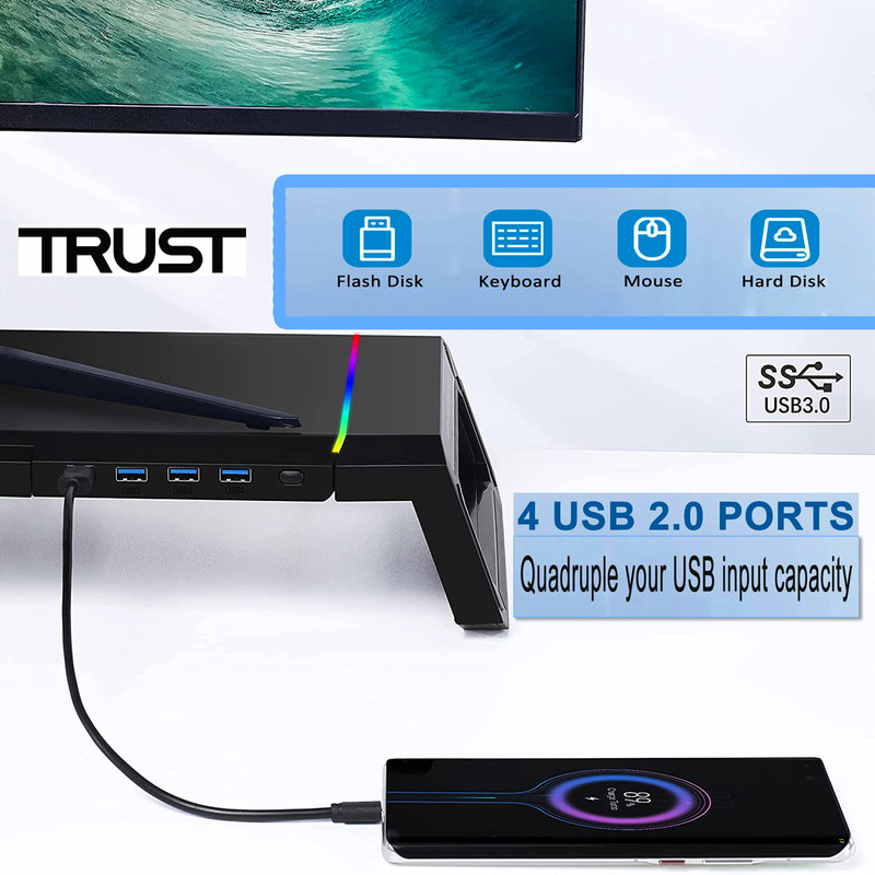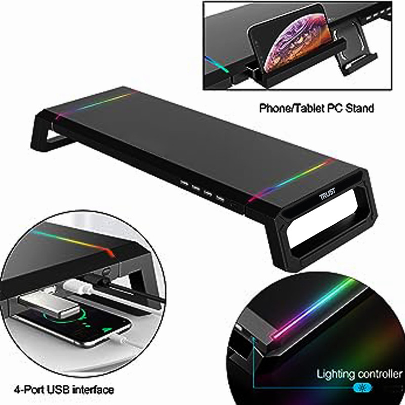 - هاب USB 4 Ports - دارای یک پورت ورودی USB 3.0 - دارای یک پورت خروجی USB 3.0 - دارای سه پورت خروجی USB 2.0 - نوار LED RGB روی دو طرف TDESK - کلید On / Off و تنظیم 10 حالت نور دهی - قابلیت تنظیم ارتفاع و طول