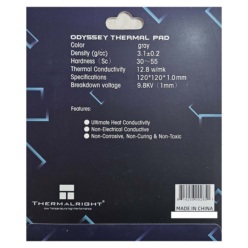 پد حرارتی برند ترمال رایت Thermal Right یکی از بهترین شرکتهای تولید کننده پد و خمیر حرارتی در جهان است. این شرکت به طور تخصصی محصولات انتقال دهنده حرارت را تولید می کند. کیفیت محصولات این شرکت در تولید پد ها و خمیرهای CPU و کارت های گرافیک به مراتب بسیار بالا می باشد. از ویژگی های مهم این پد حرارتی می توان به انعطاف پذیری مناسب، عایق بودن الکتریسیته، طول عمر بالا، چگالی مناسب و ضریب انتقال حرارت 12.8 وات بر متر کلوین اشاره کرد. ابعاد دقیق این محصول طول 12 سانت و عرض 12 سانت و ضخامت 1 میلیمتر میباشد.