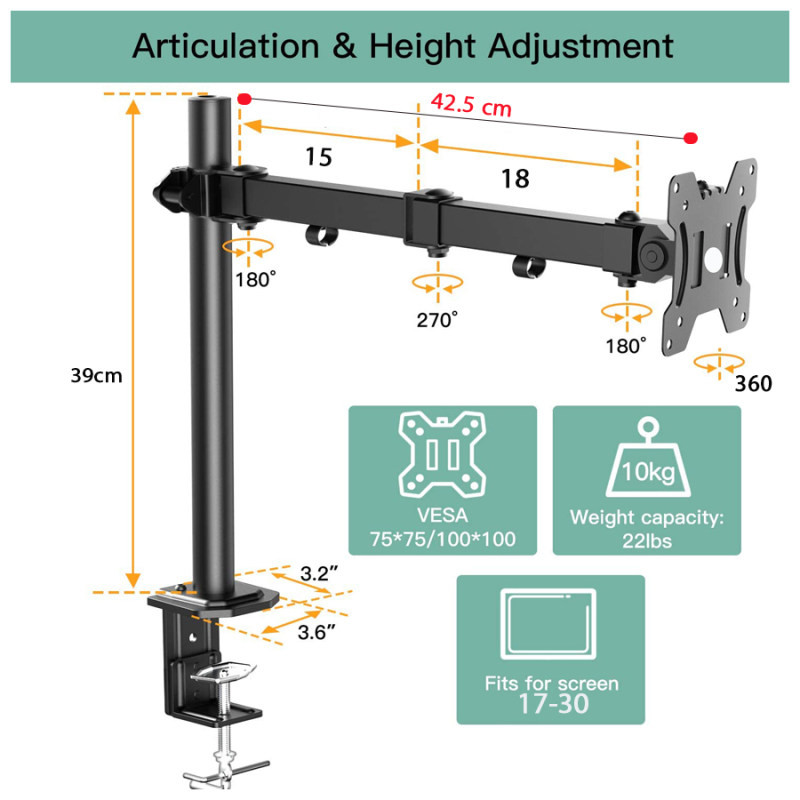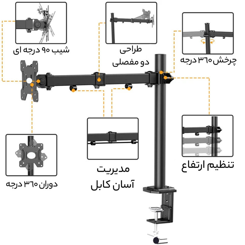 پایه رومیزی مانیتور خارجی برند ERGO مدل ERLA003 می باشد. این پایه مناسب سایز 17 تا 30 اینچ می باشد و با تحمل وزن 10 کیلوگرم می باشد.این پایه قابل تنظیم و ارگونومیک بوده ودر موقعیتهای متفاوت بسته به نیاز کاربرمی توانید زاویه نمایشگر خود را تنظیم نمایید.