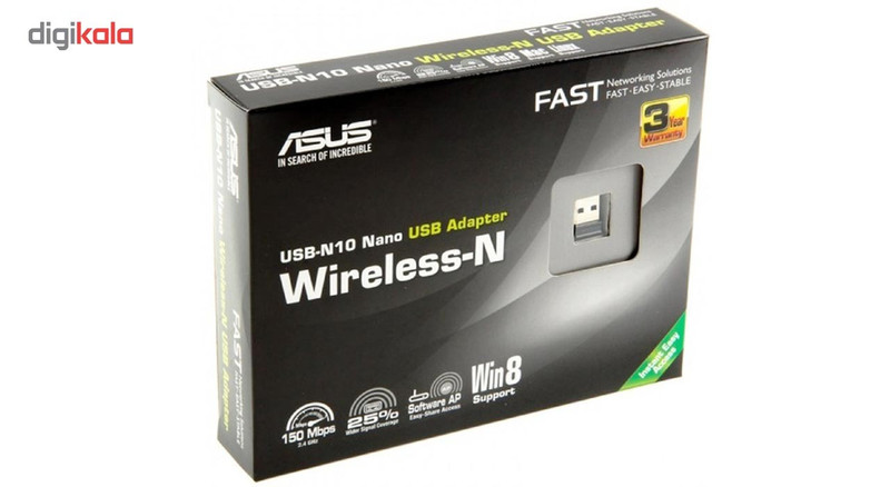 شرکت «ایسوس» محصولی را با نام «USB-N10 Nano» روانه بازار کرده که درواقع یک کارت شبکهی بیسیم با ابعاد بسیار کوچک است. این کارت شبکه از طریق USB به کامپیوتر متصل میشود و میتواند امکان اتصال به شبکههای بیسیم را برای کامپیوتر یا لپ تاپ کاربر فراهم کند. کارت شبکهی USB-N10 Nano شرکت ایسوس از استاندارد IEEE 802.11 b/g/n پشتیبانی میکند که تضمین کنندهی پایداری و امنیت شبکهی بیسیم در آن است. همچنین این محصول از نوع N150 بوده که نشان دهندهی سرعت خوب آن در انتقال اطلاعات به صورت بیسیم است. این کارت شبکهی بیسیم شرکت ایسوس ابعادی مشابه یک فلشمموری بند انگشتی دارد و پس از اتصال به درگاه USB کامپیوتر باعث اشغال یا تداخل در استفاده از درگاههای کناری نمیشود. ابعاد بسیار کوچک، شبکهی بیسیم پایدار و قیمت مناسب این محصول باعث شده که بتوان USB-N10 Nano را محصولی با ارزش خرید بالا دانست. این محصول با سیستمعاملهای لینوکس، ویندوز و مک به خوبی سازگار است. شرکت ایسوس یک نشانگر LED روی بدنهی آن تعبیه کرده که پس از اتصال به کامپیوتر روشن خواهد شد.