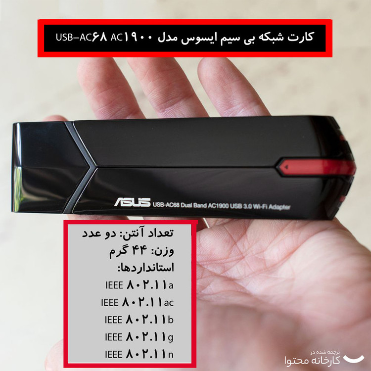 کارت شبکه بی سیم ایسوس مدل USB-AC68 AC1900