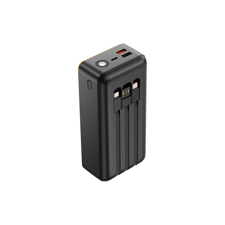 پشتیبانی از شارژ سریع تا 22.5 وات پشتیبانی از پروتکل های مختلف شارژ سریع دارای کابل خروجی متصل Type-C و Lightning کابل ورودی متصل USB-A برای شارژ پاوربانک دارای چراغ قوه نمایشگر درصد شارژ باطری