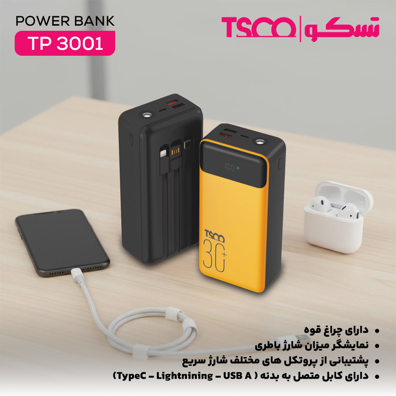 پاوربانک 22.5 وات تسکو مدل TP 3001 ظرفیت 30000 میلیآمپرساعت