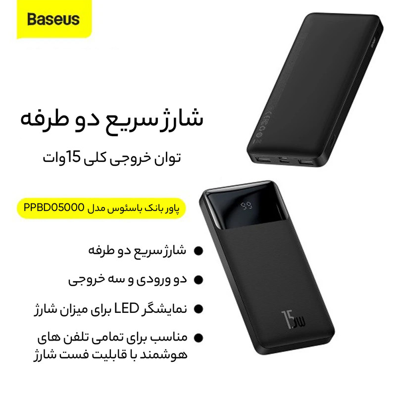 پاور بانک باسئوس مدل PPBD05000 ظرفیت 10000 میلی آمپر ساعت