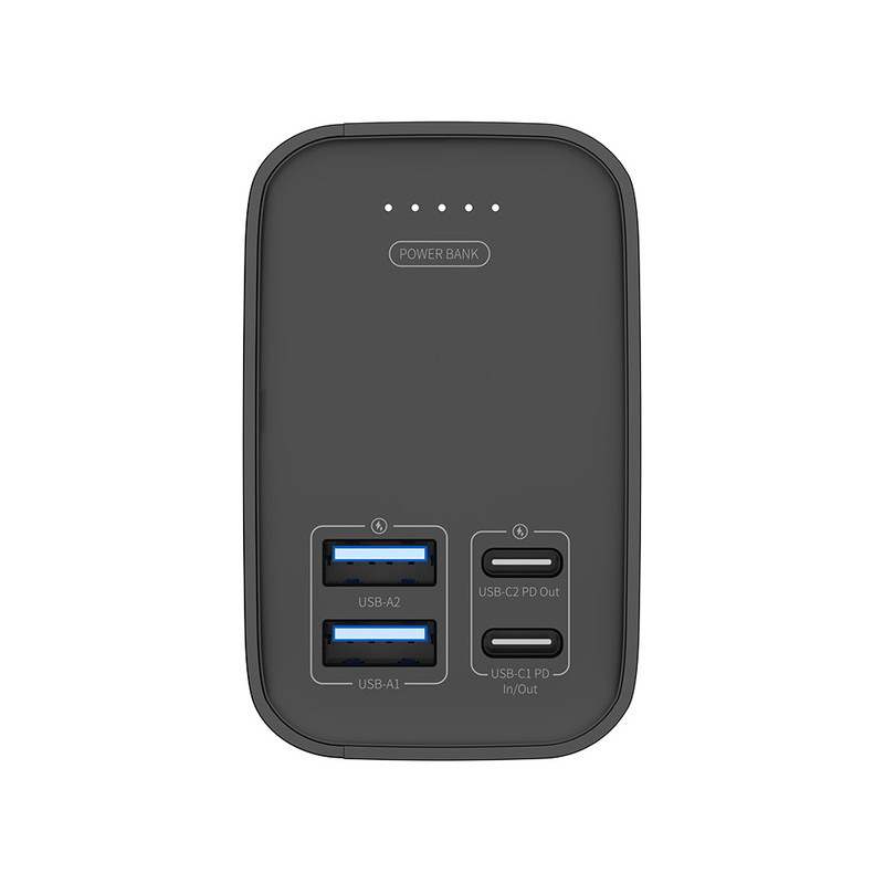 حداکثر توان خروجی: 65W تعداد درگاه ورودی:1 تعداد درگاه خروجی:4 باتری: لیتیوم پلیمری جنس بدنه: پلاستیک ABS