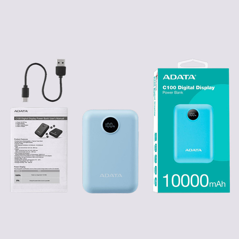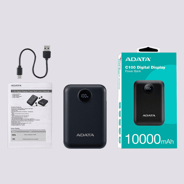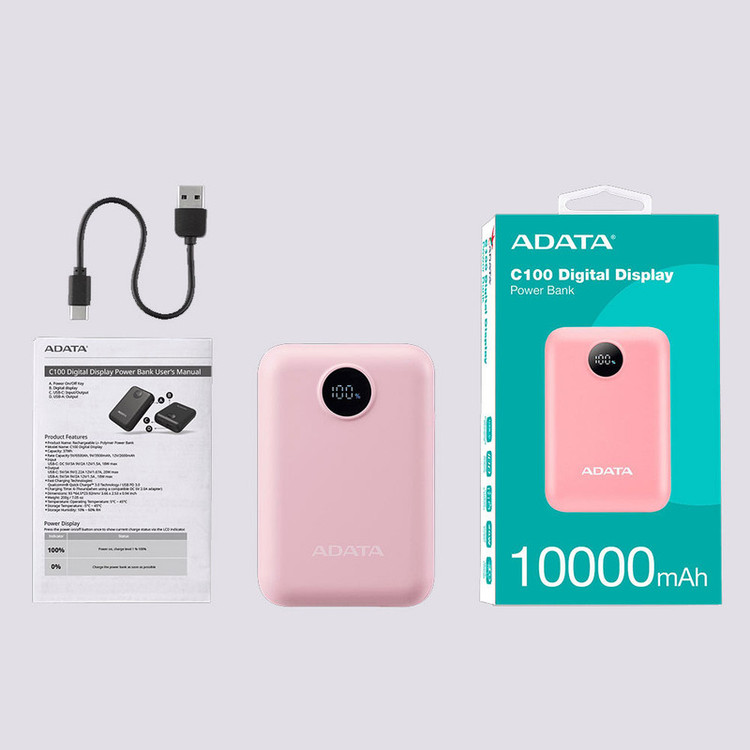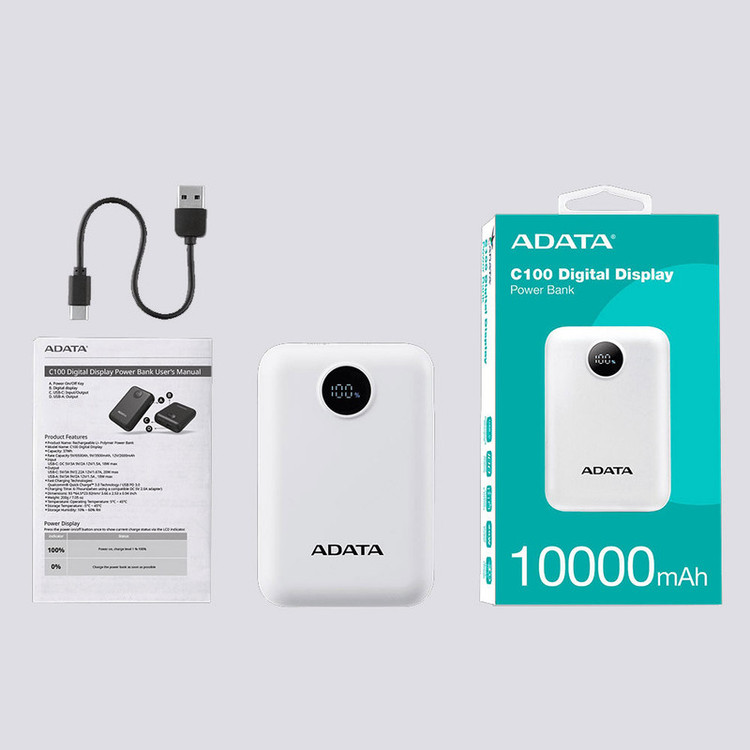 پاوربانک 20 وات ای دیتا مدل C100 Digital Display ظرفیت 10000 میلیآمپرساعت