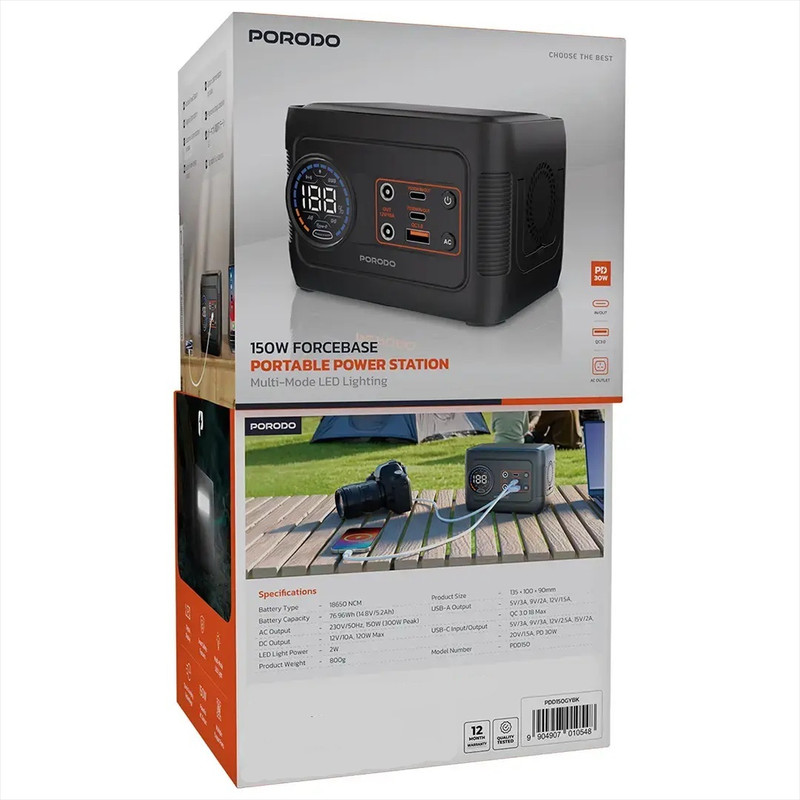 پاوراستیشن 150وات پرودو مدل FORCEBASE PDD150GYBK ظرفیت 52000 میلی آمپر ساعت