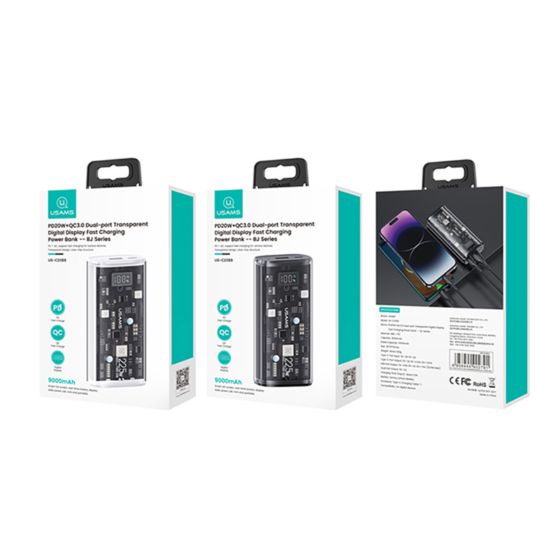 مشخصات فنی: دارای دو پورت خروجی (یک تایپ سی - یک USB)