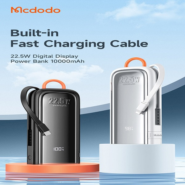 ظرفیت: 10000 میلیآمپر توان خروجی: 22.5 وات تعداد پورت: 2 عدد تعداد شارژ همزمان دستگاه: 3 عدد Fast Charge: دارد تعداد کابل متصل به پاوربانک: 1 کابل Type-C و 1 کابل Lightning آیفون