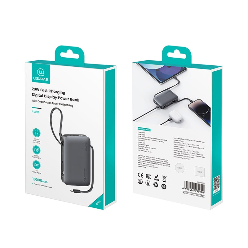 اگر به دنبال یک پاوربانک جمعوجور و در عین حال قدرتمند هستید که هم ظاهر شیک داشته باشد و هم تمام نیازهای شارژ روزانه شما را برآورده کند، پاوربانک 10000 میلیآمپر یوسمز مدل CD228 انتخابی هوشمندانه است. این محصول با ظرفیت بالا، طراحی باریک و پشتیبانی از جدیدترین فناوریهای شارژ سریع، یک همراه ایدهآل برای سفر، محل کار و استفاده روزمره به حساب میآید.