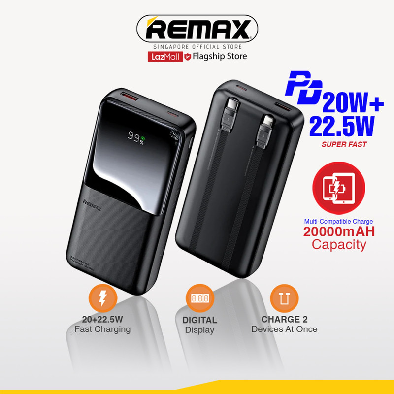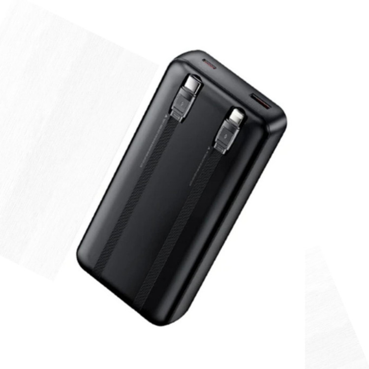 ظرفیت 20000 میلی آمپر دارای صفحه نمایش دارای دو عدد کابل سرخود برای تایپ سی و لایتنینگ قابلیت فست شارژ خروجی 22.5 وات 0 20 وات دارای سه عدد خروجی و یک عدد ورودی