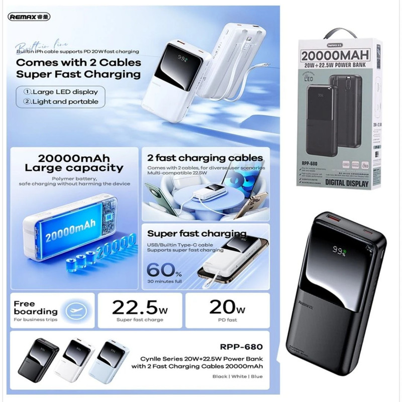 پاوربانک ریمکس مدل RPP-680 ظرفیت 20000 میلی آمپر ساعت