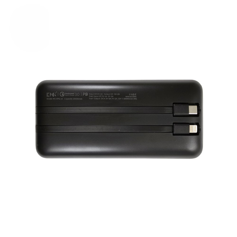 مشخصات فنی: ظرفیت : 20000mAh پشتیبانی از شارژ سریع QC3.0 ورودی و خروجی متنوع: ورودی: DC 5V-2A، 9V-2A، 12V-1.5A خروجی: DC 5V-3A، 9V-2A، 12V-1.5A (حداکثر 22.5 وات)
