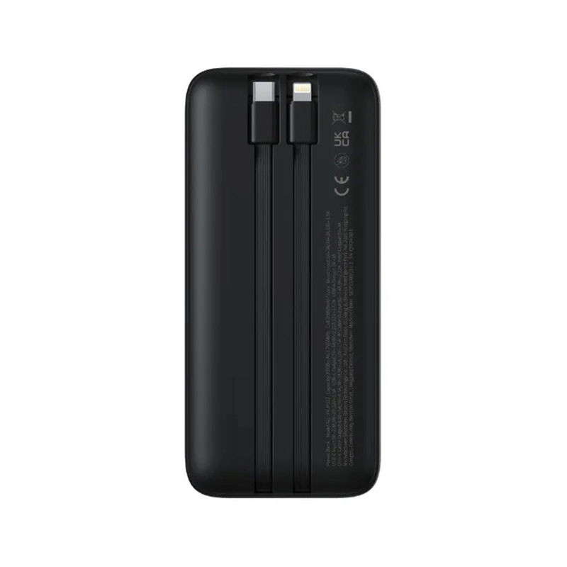 پاوربانک Baseus Lipow Dual‑Cable با ظرفیت اسمی 20000 mAh، باتری Li‑Polymer، نمایشگر دیجیتال میزان شارژ، پشتیبانی از شارژ سریع 22.5 W، دو کابل داخلی (USB‑C و Lightning)، پورت USB‑C و USB‑A و محافظتهای ایمنی استاندارد