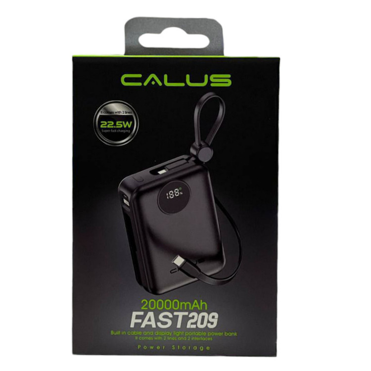 پاور بانک کالوس ۲۰۰۰۰ مدل fast 209 سوپر فست شارژ یکی از گزینه های قدرتمند و در عین حال خوش دست در بازار لوازم جانبی است. این دستگاه با تمرکز بر تکنولوژی Super Fast Charge طراحی شده تا نیاز کاربران حرفه ای که همزمان چندین دستگاه دارند را برطرف کند. پاوربانک CALUS FAST۲۰۹ یک پاوربانک جمع وجور و قدرتمند است که با پشتیبانی از شارژ سریع ۲۲.۵ وات گزینه ای عالی برای استفاده روزمره سفر و محل کار محسوب میشود. وجود کابل داخلی و نمایشگر دیجیتال استفاده از این پاوربانک را بسیار راحت و کاربردی کرده است.خروجی USB تکنولوژی QC و Super Fast) نکته برجسته این پورت خروجی 10v/2.25a است. این مشخصه نشان دهنده پشتیبانی از توان ۲۲.۵ وات است. خروجی Type-C تکنولوژی (PD بیشترین توان را در ولتاژ 9v/2.22a حدود ۲۰ وات ارائه میدهد که برای شارژ سریع سری آیفون ۱۲ تا ۱۵ کاملاً بهینه است.لایتنینگ (Lightning ورودی 5v/2a مخصوص کاربران آیفون تعبیه شده تا نیاز به حمل کابل اضافه برای شارژ پاوربانک نداشته باشند.تایپ سی Type-C) از توانهای مختلف تا ۱۸ وات (9v/2a) پشتیبانی میکند که باعث میشود خود مخزن ۲۰۰۰۰ میلی آمپری در زمان معقولی شارژ شود.این پاوربانک در دسته محصولات Compact یا فشرده قرار میگیرد.