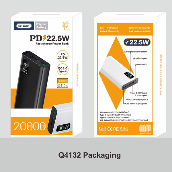 درگاه خروجی USB-A1/2:4.5V/5A 5V/4.5A 9V/2A 12V/1.5A