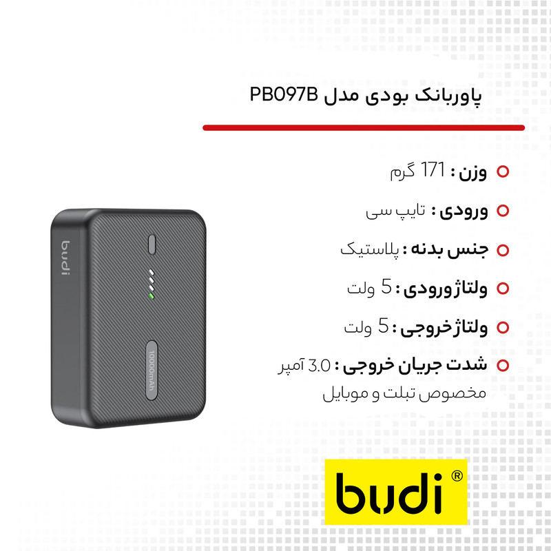 پاور بانک بودی مدل PB097B ظرفیت 10000 میلی آمپر ساعت