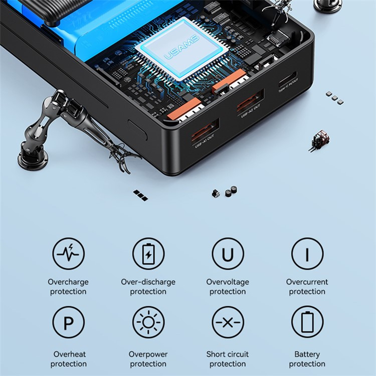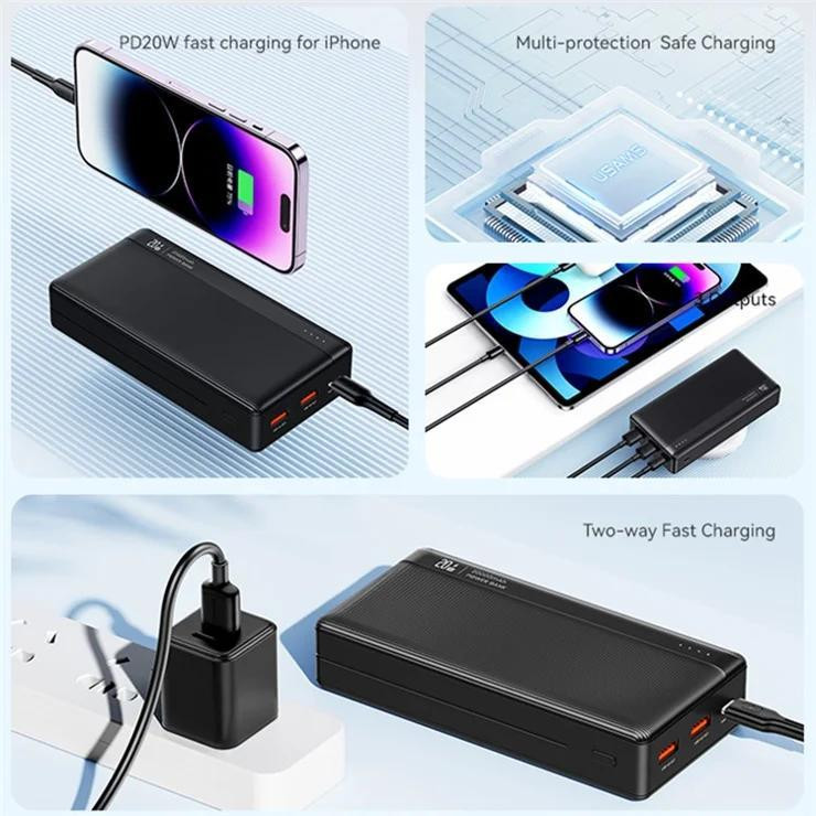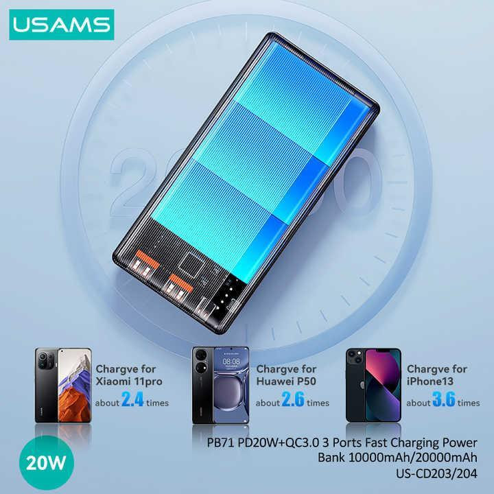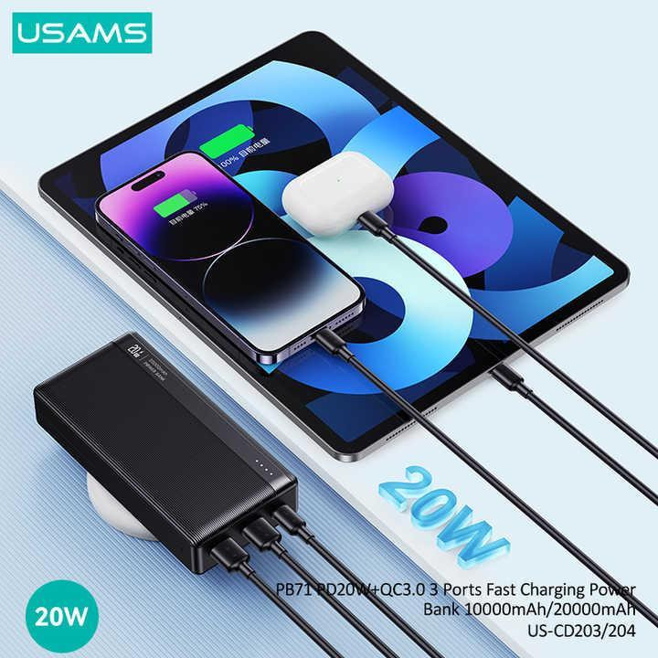 امروزه پاور بانکها به امری ضروری تبدیل شده اند. پاور بانکها برای تمام دستگاههایی که دارای پورت یو اس بی USB و Typecهستند استفاده میشوند مانند اسپیکرها ، سیستمهای GPS ، پلیرها و…. پاور بانکها خود به ابعاد و طراحی گوناگون تولید شده اند و ولتاژ برق متفاوتی دارند. این محصول، پاور بانک 20000 میلی آمپر یوسمز CD204 می باشد که توان شارژدهی با قدرت 20 وات را دارد. طراحی زیبا و چشم گیر این پاور بانک نظر زیادی را به خود جلب نموده است. جنس بدنه این لوازم جانبی کاربردی از پلاستیک با کیفیت ساخته شده است و دارای ابعاد 140x68.6x30 میلی متر است. پاوربانک 20 هزار یوسمز مدل CD204 دارای سه درگاه خروجی می باشد و قابلیت شارژ همزمان سه دستگاه را می باشد.