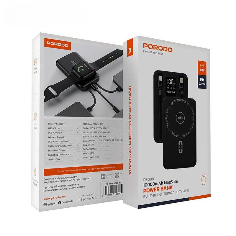 ظرفیت: ۱۰۰۰۰ میلیآمپر ساعت تکنولوژی شارژ سریع PD + QC3.0 شارژ بیسیم مغناطیسی MagSafe کابل تایپسی متصل چراغ LED نمایش درصد شارژ محافظت در برابر شارژ بیشازحد، اتصال کوتاه، و دمای بالا