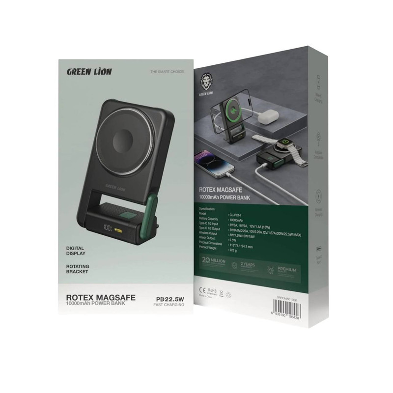 پاوربانک گرین لاین مدل ROTEX MAGSAFE ظرفیت 10000 میلی آمپر ساعت