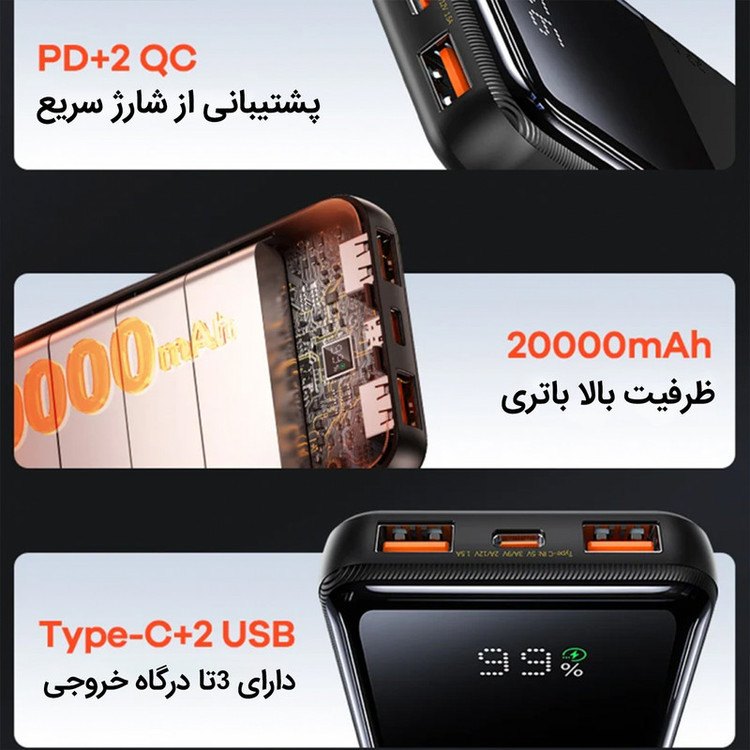 پاوربانک ریمکس مدل RPP-623 ظرفیت 20000 میلی آمپر ساعت