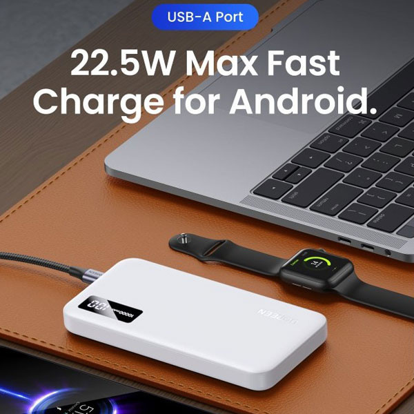 مشخصات فنی: قابلیت فست شارژ، حداکثر توان خروجی 20 وات، دارای کابل USB-C، ظرفیت باتری 10000 میلی آمپر ساعت، دارای یک پورت USB-A و USB-C