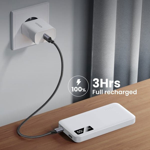 مشخصات فنی: قابلیت فست شارژ، حداکثر توان خروجی 20 وات، دارای کابل USB-C، ظرفیت باتری 10000 میلی آمپر ساعت، دارای یک پورت USB-A و USB-C