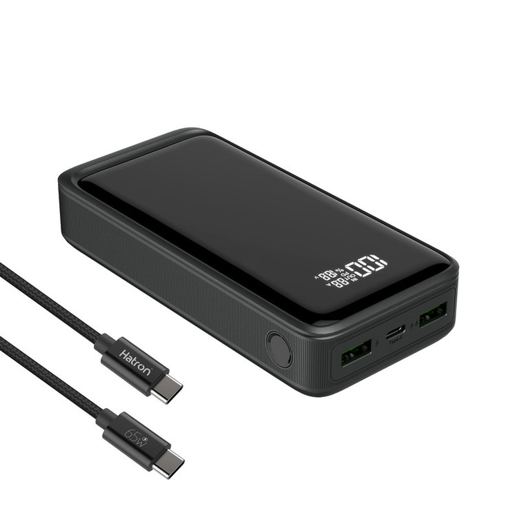 پاوربانک هترون مدل HPB2055G-100W ظرفیت 20000 میلی آمپر ساعت به همراه کابل تبدیل USB به USB-C