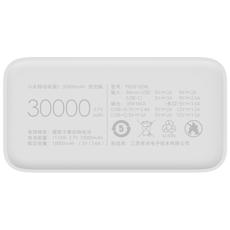 خروجی: (Multiple ports) 5V⎓3.6A (USB-A single port) 5V⎓2.4A 9V⎓2A 12V⎓1.5A (USB-C) 5V⎓3A 9V⎓2A 12V⎓1.5A ورودی: (USB-C) 5V⎓3A 9V⎓2.6A