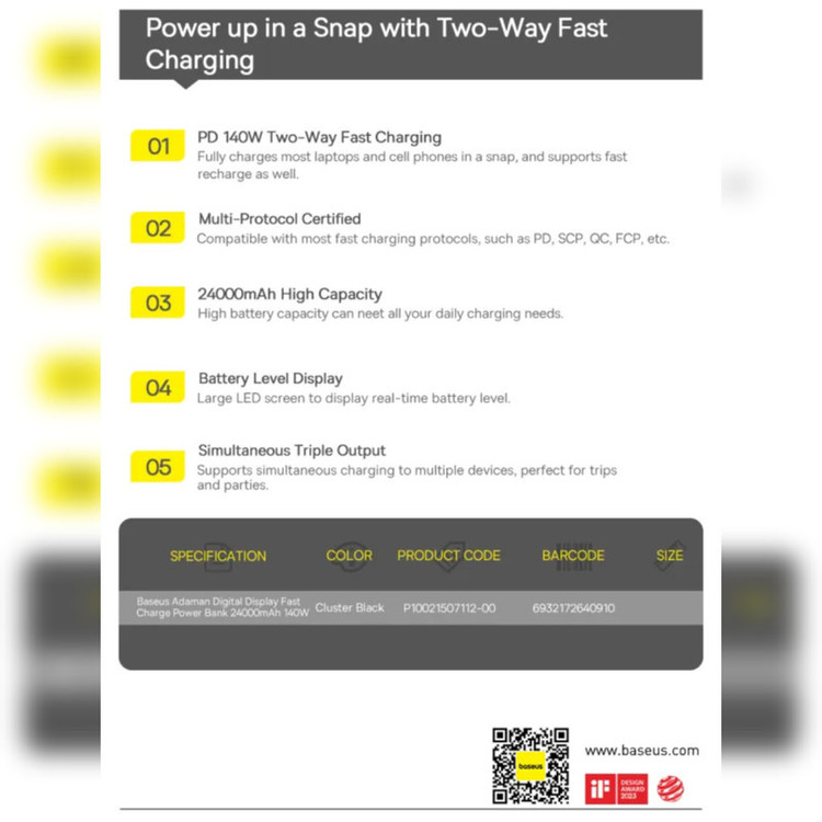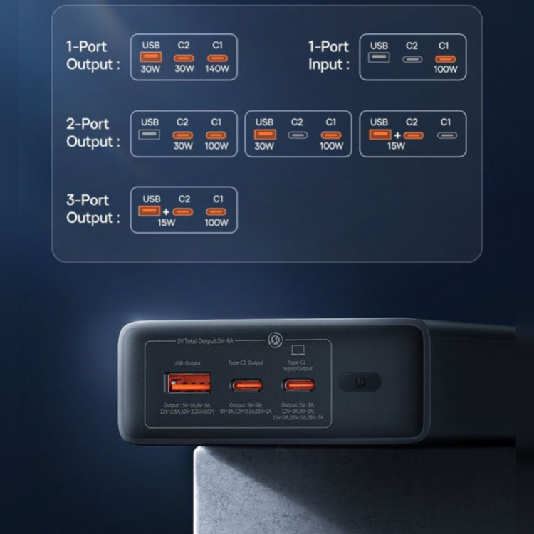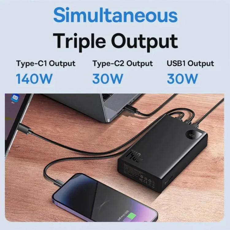 پاوربانک بیسوس مدل Adaman 140W ظرفیت 24000 میلی آمپر ساعت