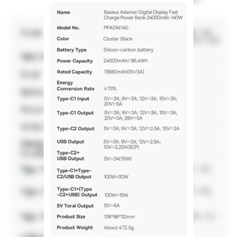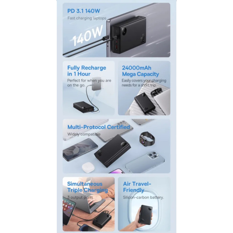 پاوربانک بیسوس مدل Adaman 140W ظرفیت 24000 میلی آمپر ساعت