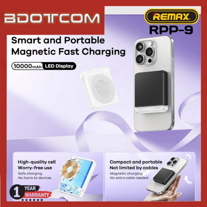 پاوربانک ریمکس مدل MagSafe Wireless Fast Charge RPP9 ظرفیت 10000 میلی آمپر ساعت
