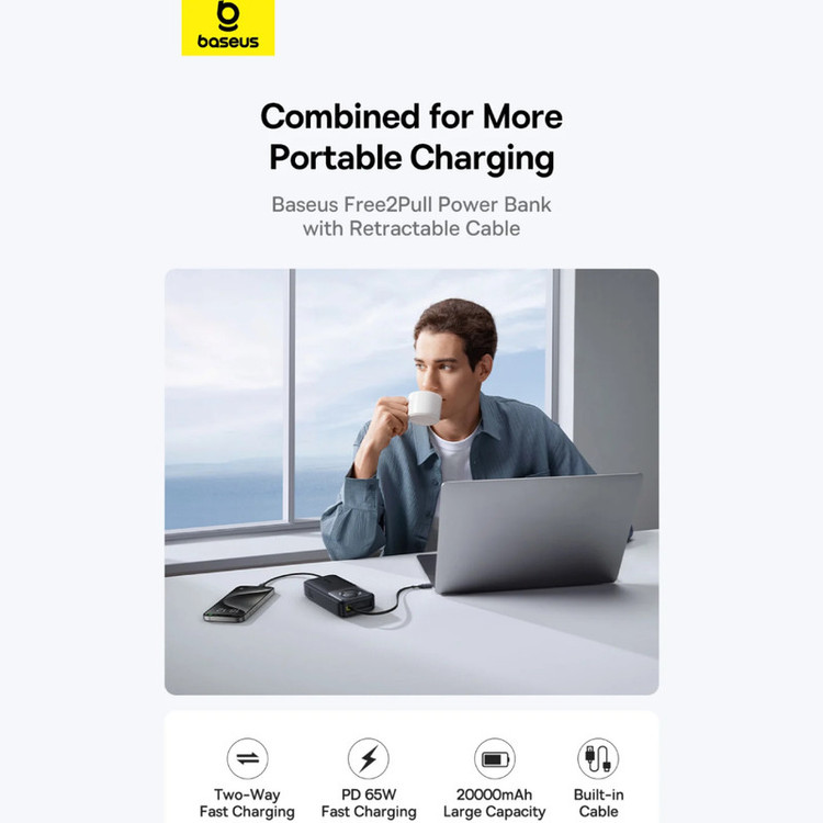 پاوربانک بیسوس مدل NOMOS 65W ظرفیت 20000 میلی آمپر ساعت