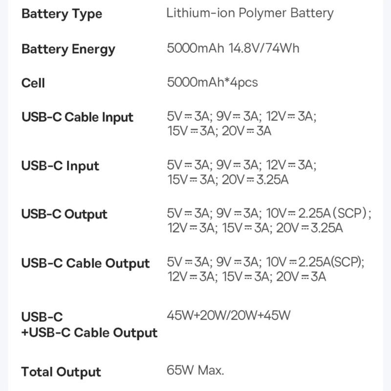 پاوربانک بیسوس مدل NOMOS 65W ظرفیت 20000 میلی آمپر ساعت