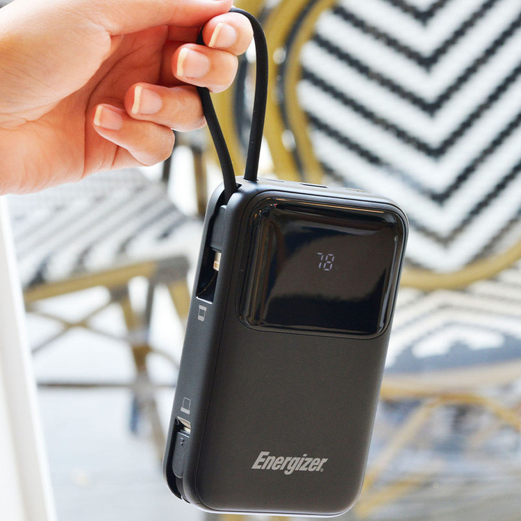 دارای نمایشگر دیجیتال توان خروجی 22.5 وات دارای 1 پورت خروجی USB-A 2 کابل خروجی Type-C و Lightning 1 پورت مشترک ورودی/خروجی Type-C دارای قابلیت فست شارژ