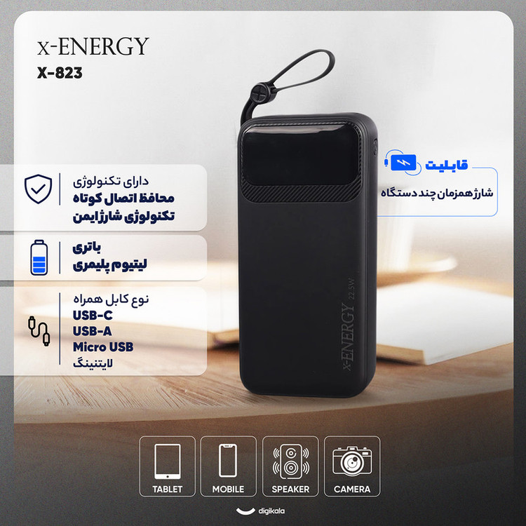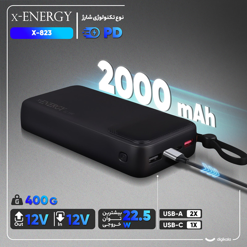 پاوربانک 22.5 وات ایکس انرژی مدل X-823 ظرفیت 20000 میلی آمپر ساعت
