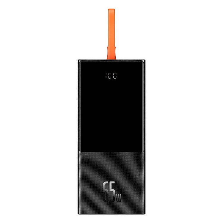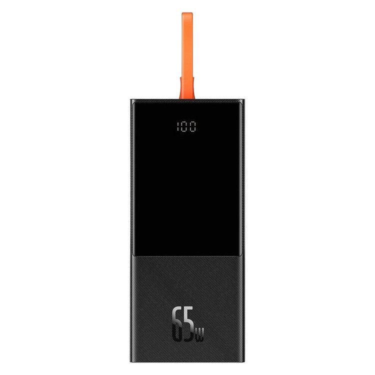 یک کابل نارنجی رنگ به پاوربانک 20000 بیسوس Elf متصل است که از نوع Type-C میباشد. قابلیت مهم این کابل این است که علاوه بر شارژ کردن خود پاوربانک (ورودی)، میتواند گوشی شما را هم شارژ کند (خروجی). شارژپاوربانک با یک آداپتور مناسب تنها 90 دقیقه طول میکشد.