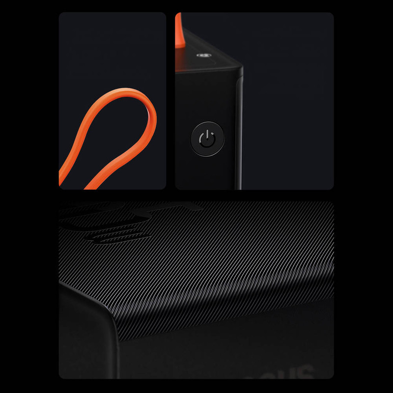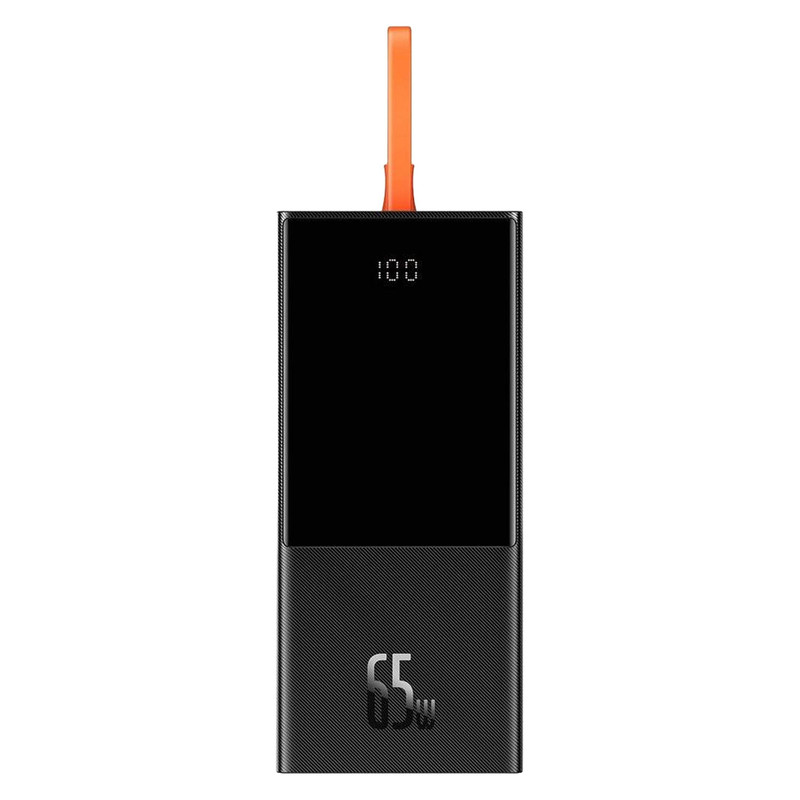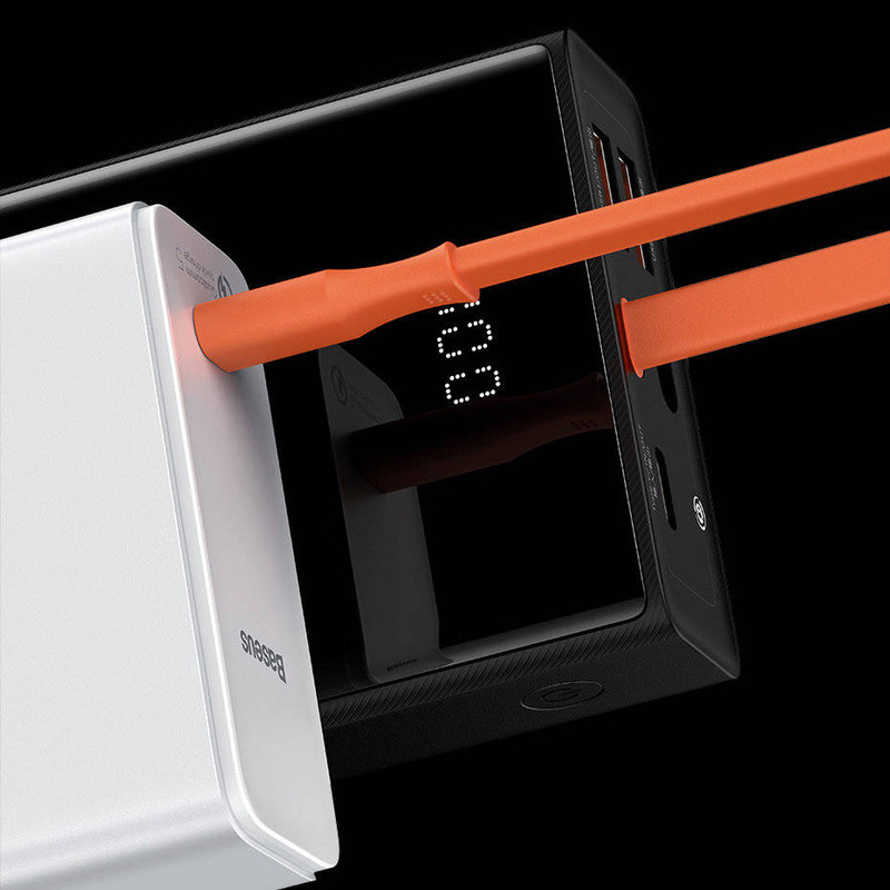 یک کابل نارنجی رنگ به پاوربانک 20000 بیسوس Elf متصل است که از نوع Type-C میباشد. قابلیت مهم این کابل این است که علاوه بر شارژ کردن خود پاوربانک (ورودی)، میتواند گوشی شما را هم شارژ کند (خروجی). شارژپاوربانک با یک آداپتور مناسب تنها 90 دقیقه طول میکشد.