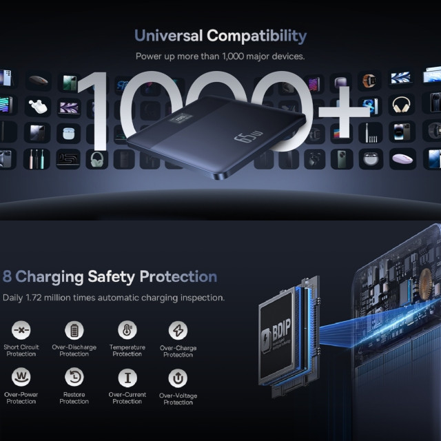 - دارای صفحه نمایش دیجیتالی هوشمند - مجهز به انواع فناوریهای شارژ سریع - دارای 2 پورت ورودی و خروجی قابلیتهای ویژه فوق العاده باریک، پشتیبانی از اپلیکیشن