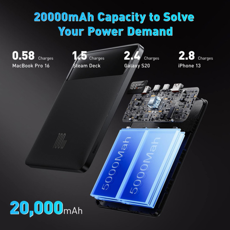 پاوربانک بیسوس مدل Blade HD Edition 100W ظرفیت 20000 میلی آمپر ساعت