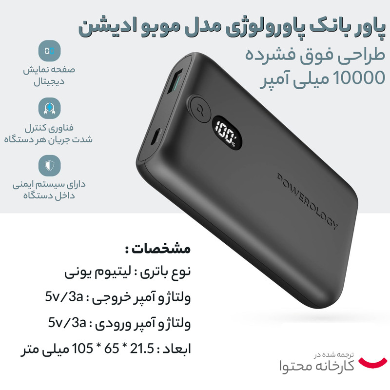 نوع باتری پاوربانک: لیتیوم یونی