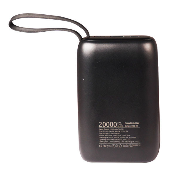 مشخصات فنی: جنس بدنه: ABS نشانگر نمایش باتری ظرفیت: 20000mAh نوع باتری: لیتیوم-پلیمر تعداد درگاه خروجی: 2 عدد حداکثر سرعت شارژ: 22.5 وات