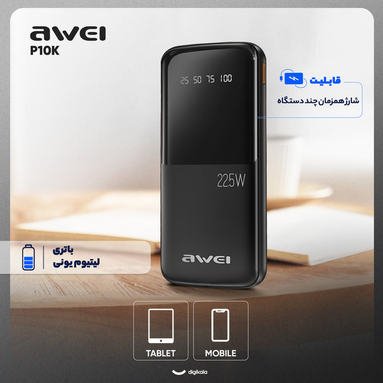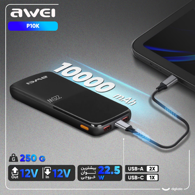 پاوربانک 22.5 وات اوی مدل P10K 22.5W ظرفیت 10000 میلی آمپر ساعت