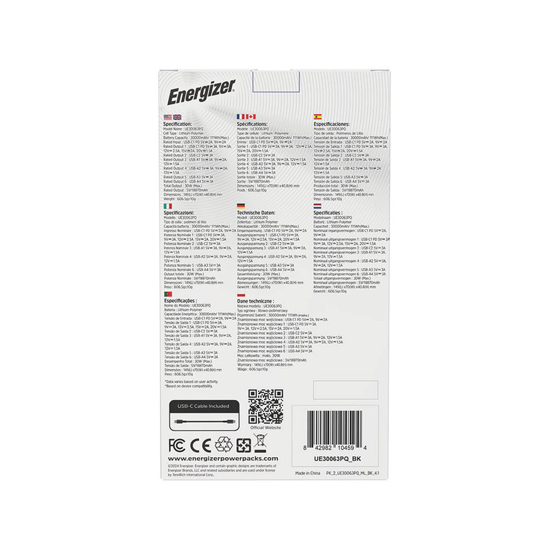 پاوربانک انرجایزر مدل UE30063PQ ظرفیت 30000 میلی آمپرساعت