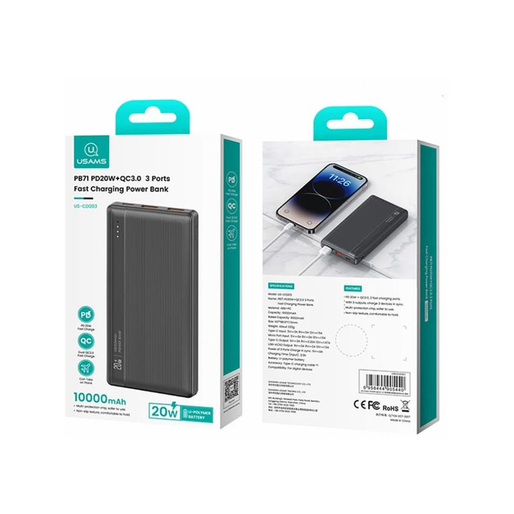 مشخصات فنی: ظرفیت: 10000 میلی آمپر ساعت نوع پورت ورودی: Type-C/Micro USB نوع پورت خروجی: Type-C/USB قابلیت شارژ سریع شارژر همزمان سه دستگاه
