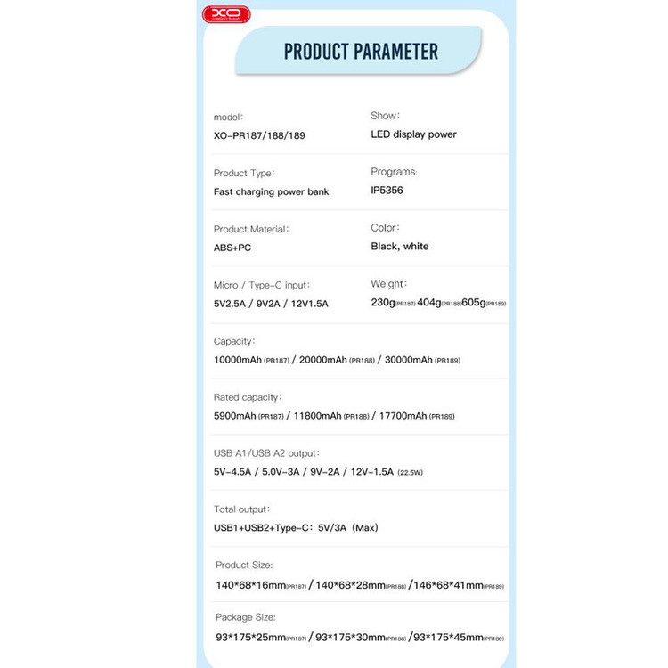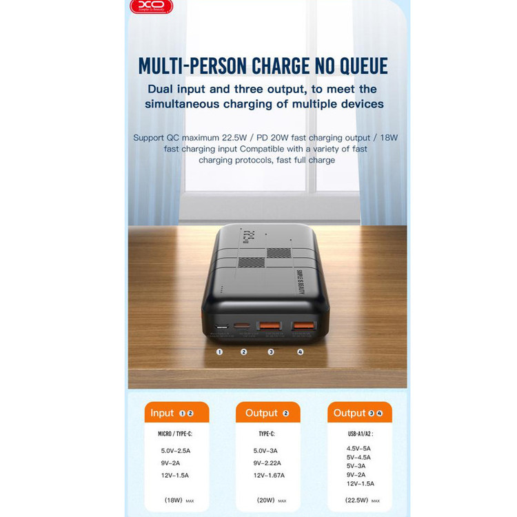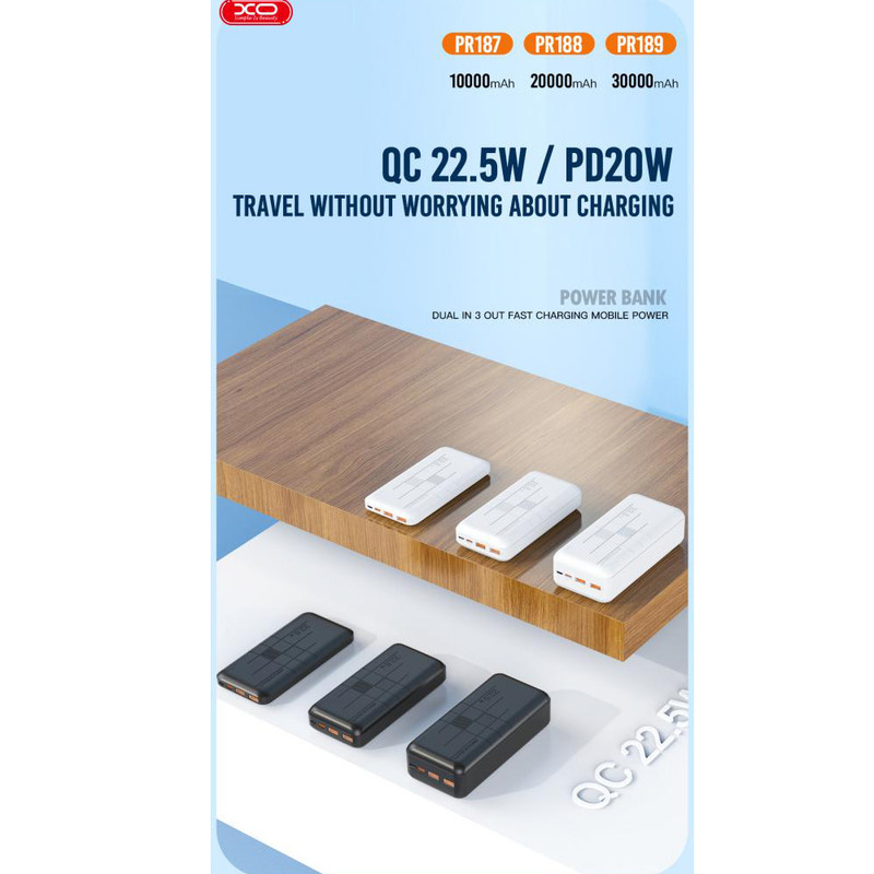 پاوربانک ایکس او مدل pr188 ظرفیت 20000 میلی آمپر ساعت