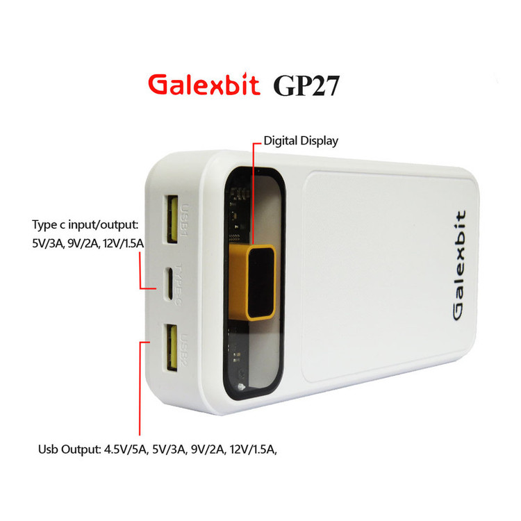 قابل حمل ، ظرفیت 20000 میلی آمپر ,شارژ سریع تا 20 وات ,دارای پورت ورودی (5V2A، 9V2A) ، پورت خروجی (5V3A ، 9V2A ، 12V1.5A) و همچنین دارای دو خروجی USB (5V3A ، 9V2A ، 12V1.5A) سازگار با پروتکل شارژ سریع PD و QC